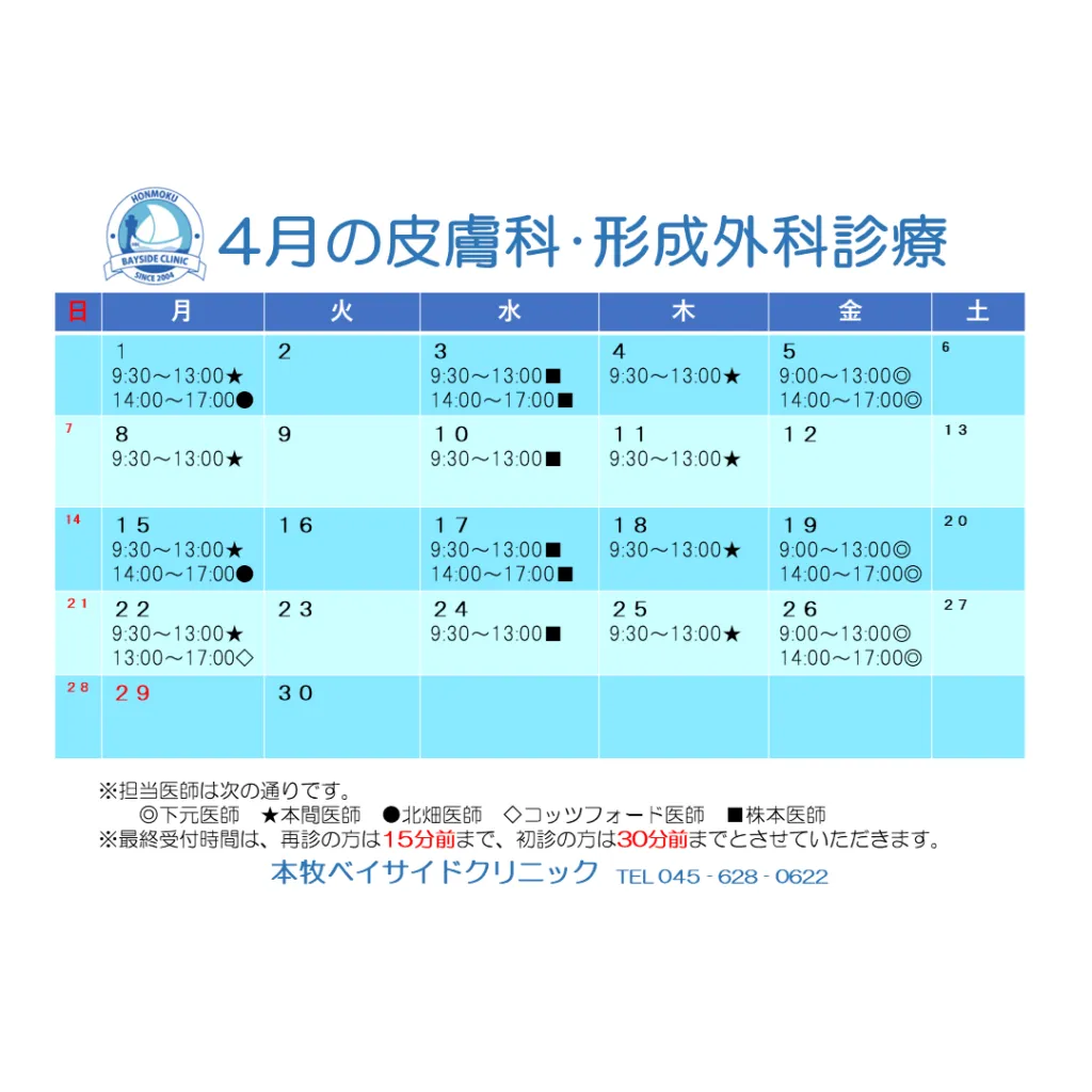 曜日によって、診療終了時間が異なりますのでご確認お願い致します。