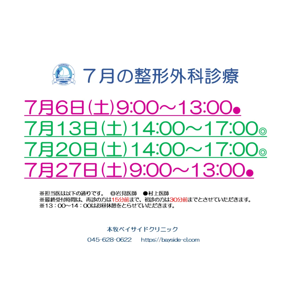 7月整形外科スケジュール追加について