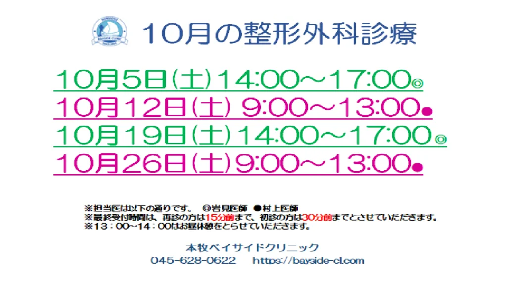 日付によって診察時間が異なるため日時をご確認の上ご来院ください📆