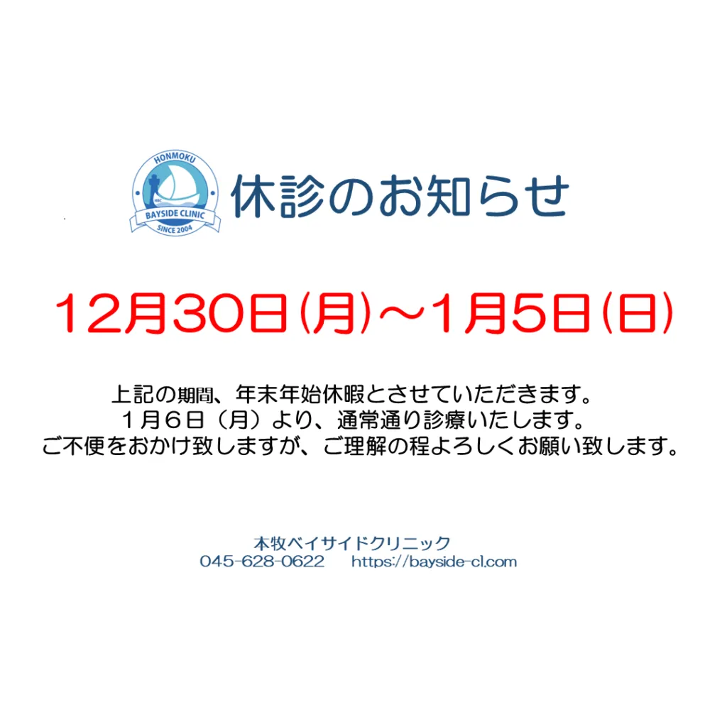 なお、12/28の診療は午前のみとなりますのでお気をつけください。