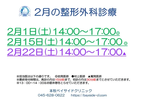 下記2025年2月の皮膚科・形成外科 / 整形外科
