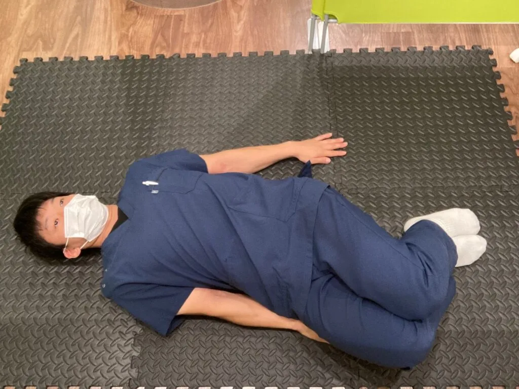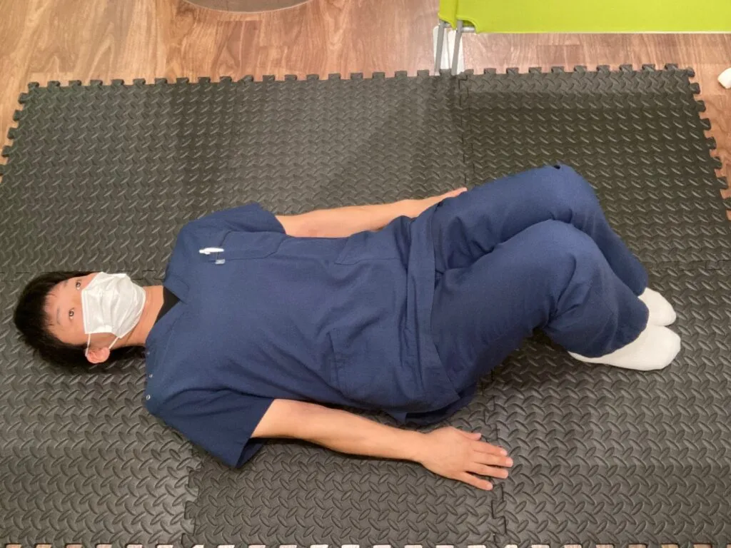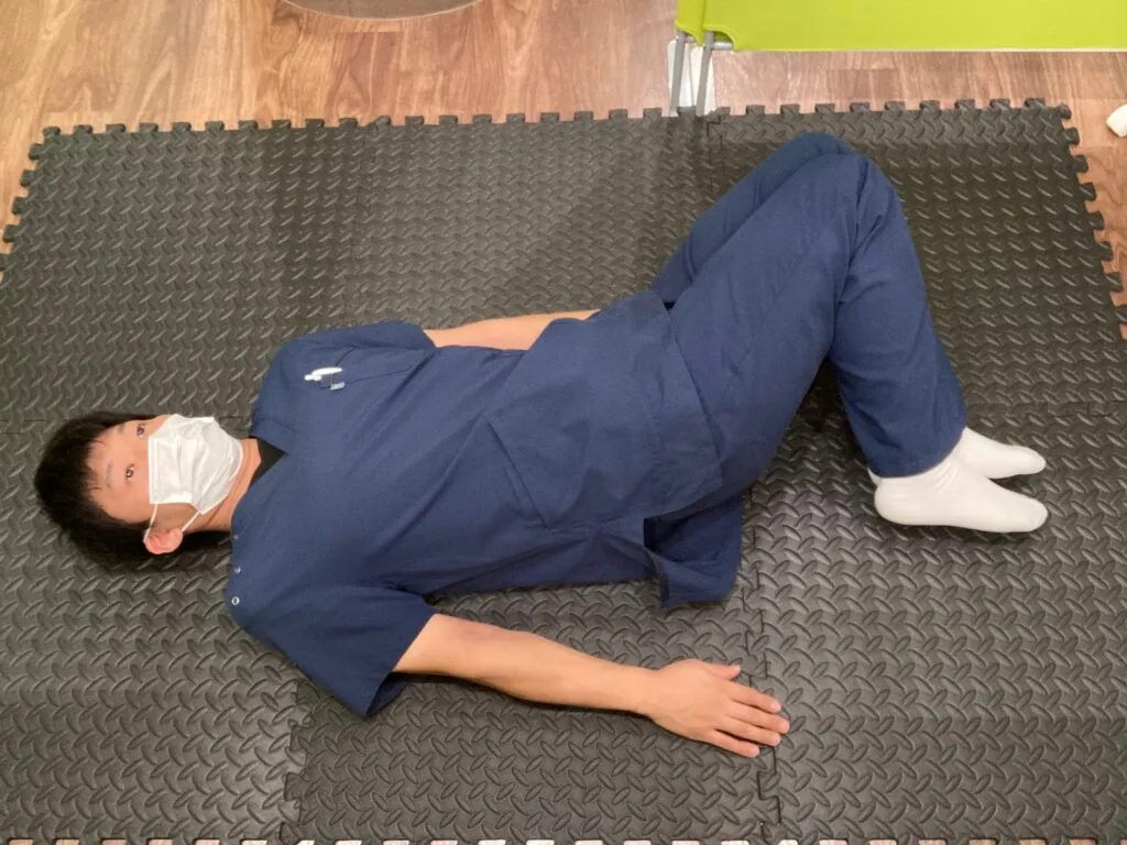 寝る前に仰向けで両膝を立てた状態で左右に倒す “ワイパー運動” を