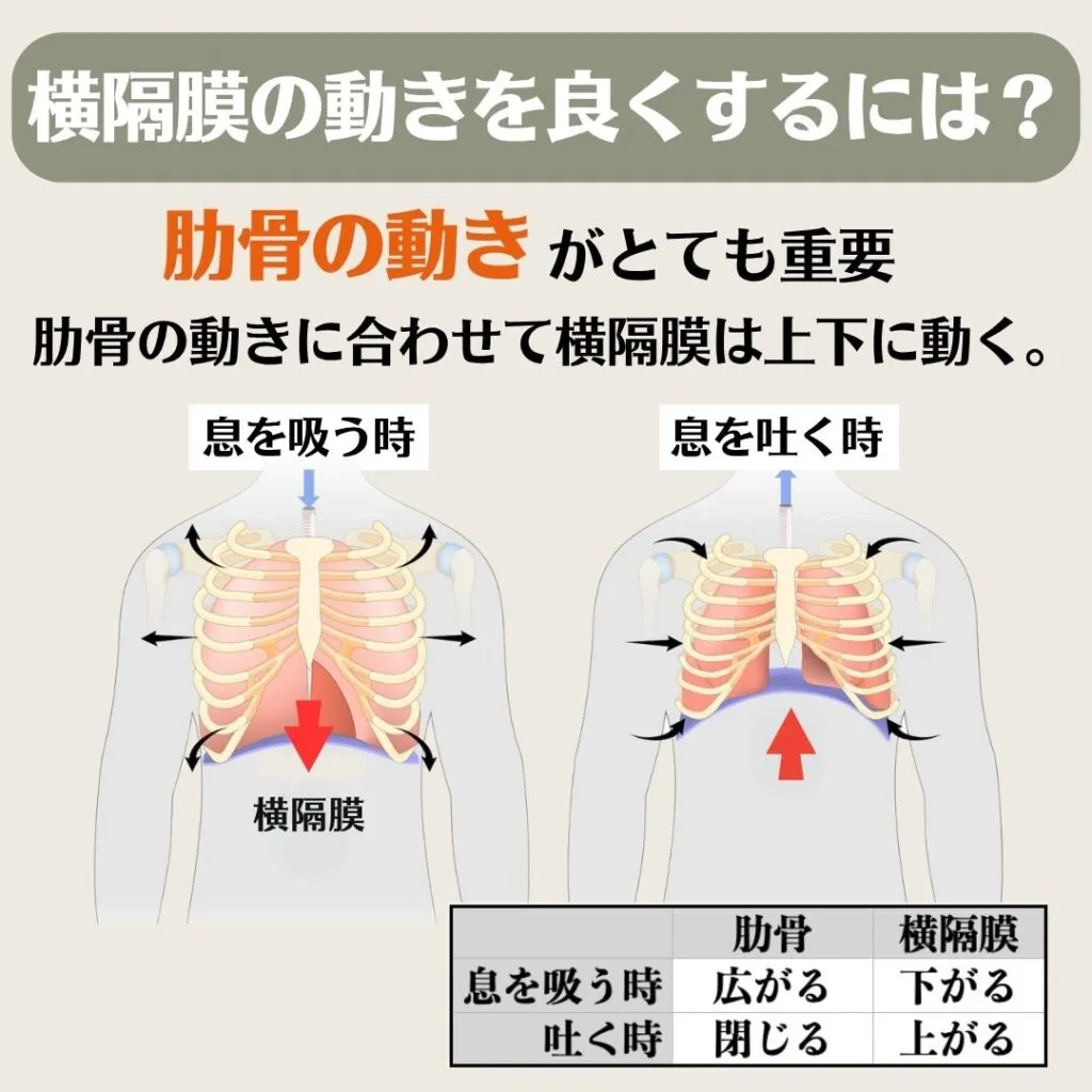横隔膜は肋骨の動きに合わせて上下しますが、